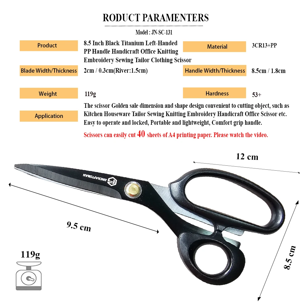 The 8.5-inch size makes them ideal for cutting fabric, cloth, and paper.